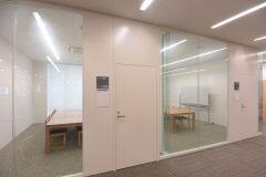 8名収容が4室、24名収容が1室あります。24名の部屋はホワイトボードのパーティションで仕切ることで2つのグループで利用できます。予約制です。