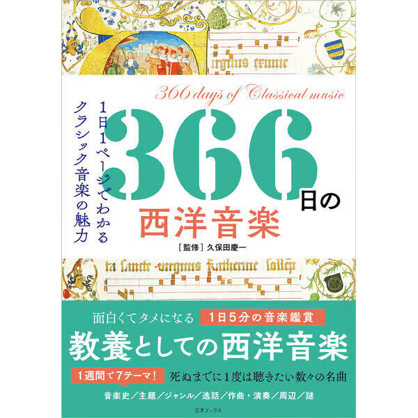 本書は「クラシック音楽をより身近で慣れ親しんだ音楽にする」をテーマに1日1ページで1つの楽曲を紹介し、作曲家や演奏のテクニック、宗教との関わりなど、7つの主題で解説しています。