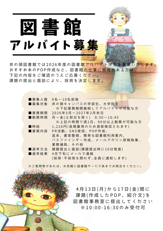 [4/13~4/17] 2026年度図書館アルバイト学生の募集について