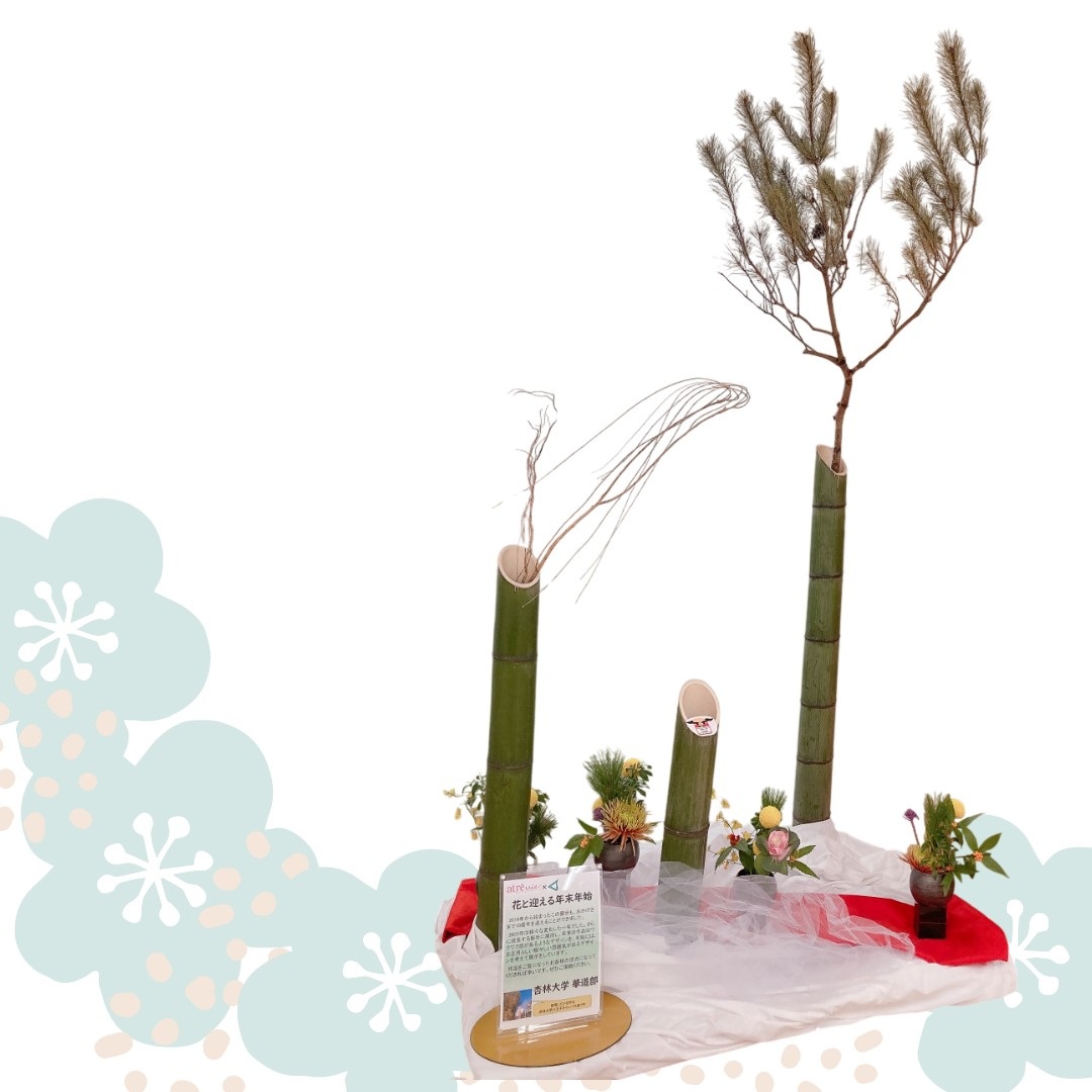 今年も華道部のご協力で2階リフレッシュルーム内に正月を祝うお花を飾って頂きました。